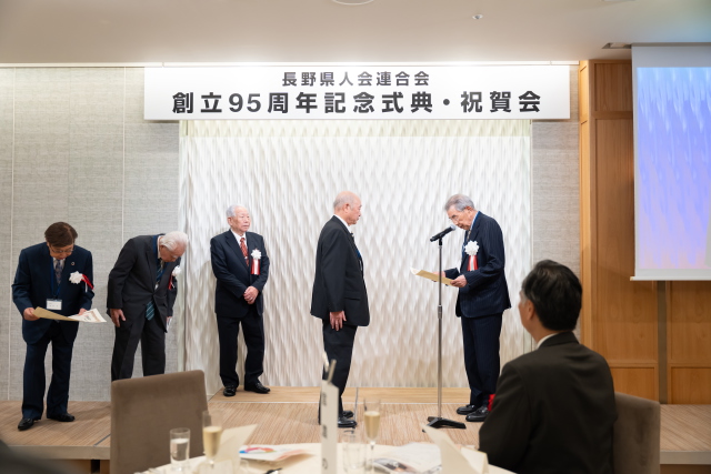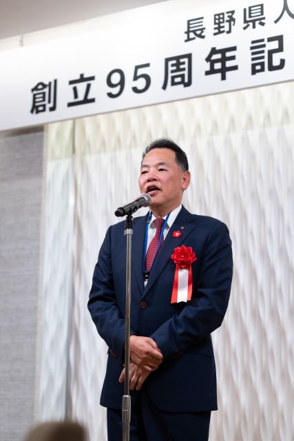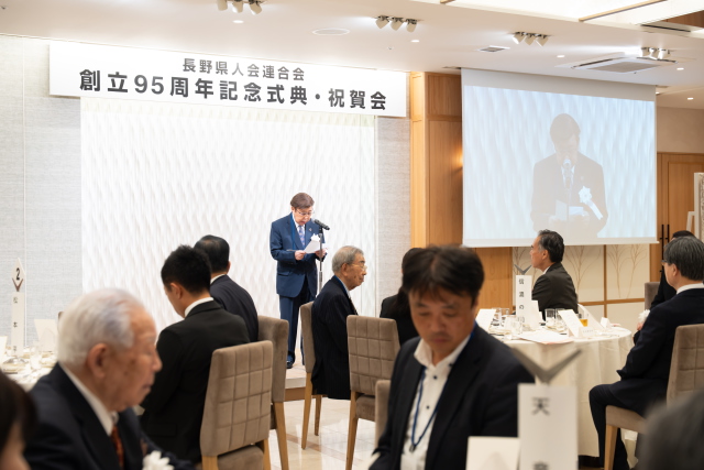令和7年10月17日(金曜日)18時から20時30分まで、東京都港区北青山のアニヴェルセル表参道を会場に、長野県人会連合会創立95周年記念式典・祝賀会が盛大に開催された。