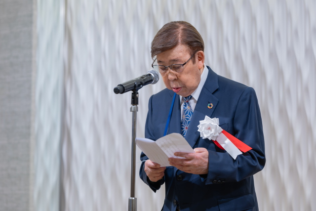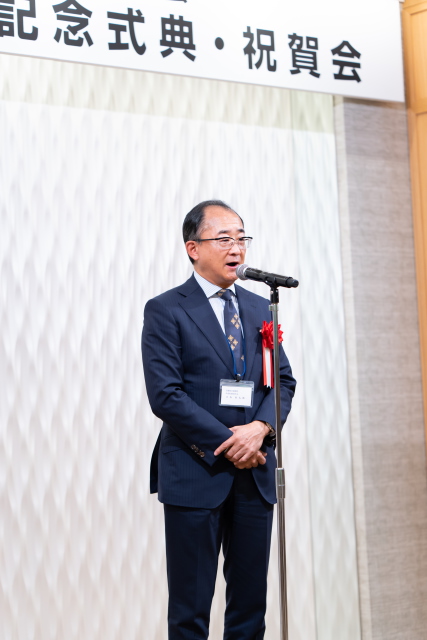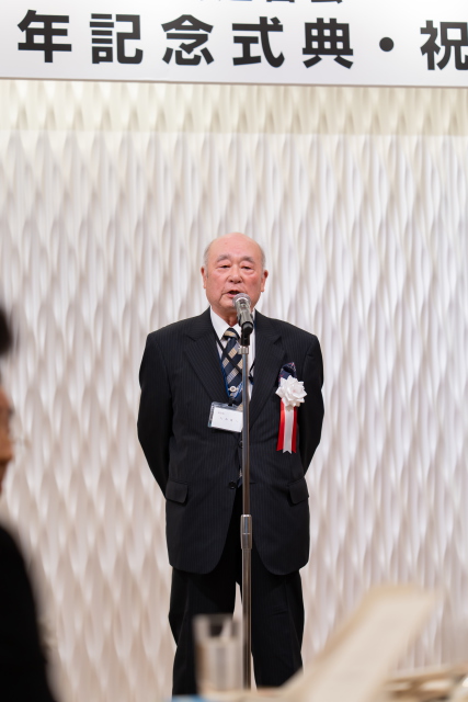 続いて、原口愼二 常務理事による来賓紹介があり、代表して阿部県知事から祝辞をいただいた。祝電の紹介の後、松井石根 専務理事より95年の歩みが報告された。